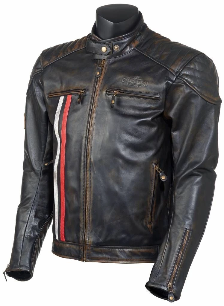 De GC Bikewear Crosby motorjas is een echte blikvanger binnen de collectie van Grand Canyon. Dit leren bikerjacket van soepel rundleer is zowel casual als op de motor te dragen dankzij de protectiedelen. Het leer van de Crosby is bewerkt voor de vintage uitstraling. De rood-witte Monaco streep benadrukt de klassieke stijl welke het goed doet op custom, naked en retro motoren.